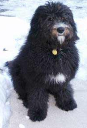 I ran out there and saw Bobo for the first time. He was about a year old or two old, weighed 130lbs., and had long curly poodle-type hair that stood out in all directions. His hair was wet and some of it had ice frozen in it. He looked a little scared at first, but then started wagging his tale and licked my face. It was love at first sight.